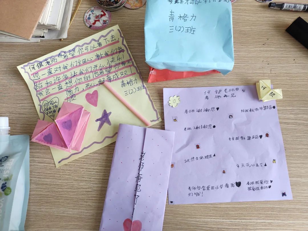 折纸做的花、爱心还有手写的信