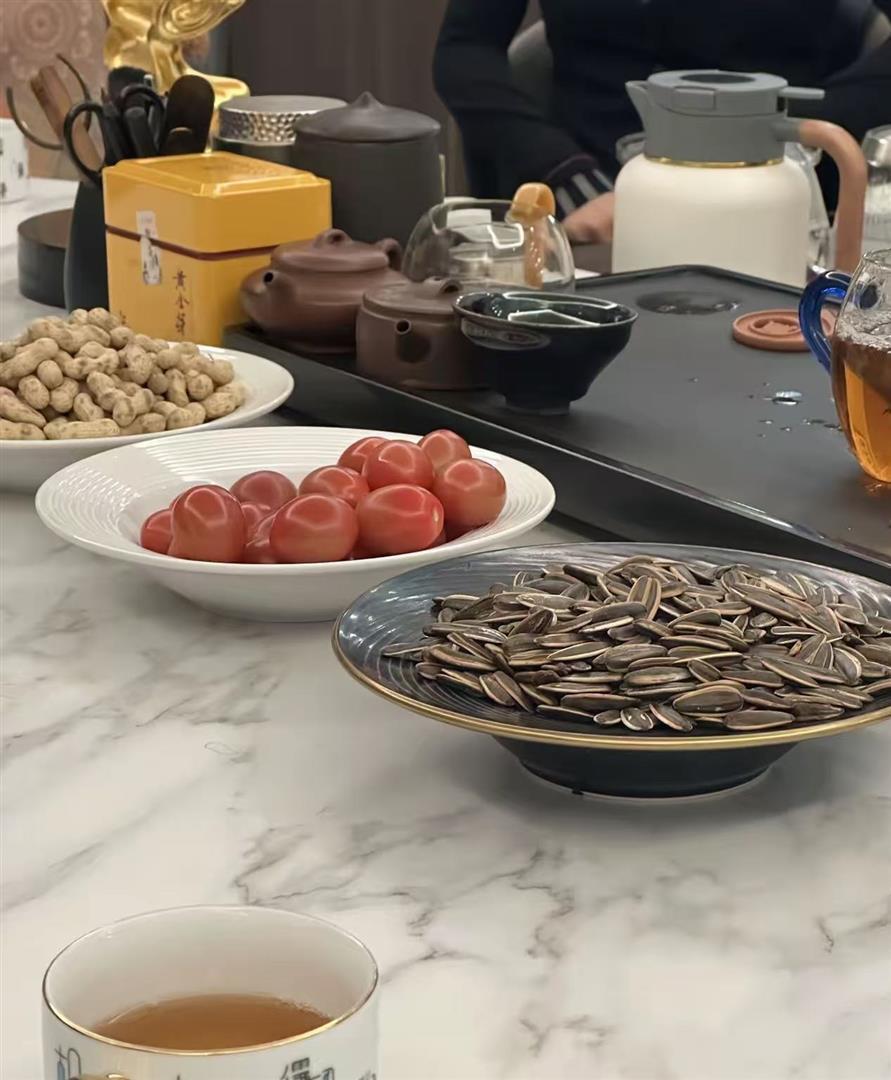 这顿饭吃得也相当养生。 一桌子人,全程没人碰酒,清一色改喝茶。 桌上那碟花生瓜子几乎没人动,只有圣女果被吃了些。 这和王石当年执掌万科时“美酒美食没断过”的形象,反差巨大。 看来到了这个岁数,他是真把健康放在第一位了。