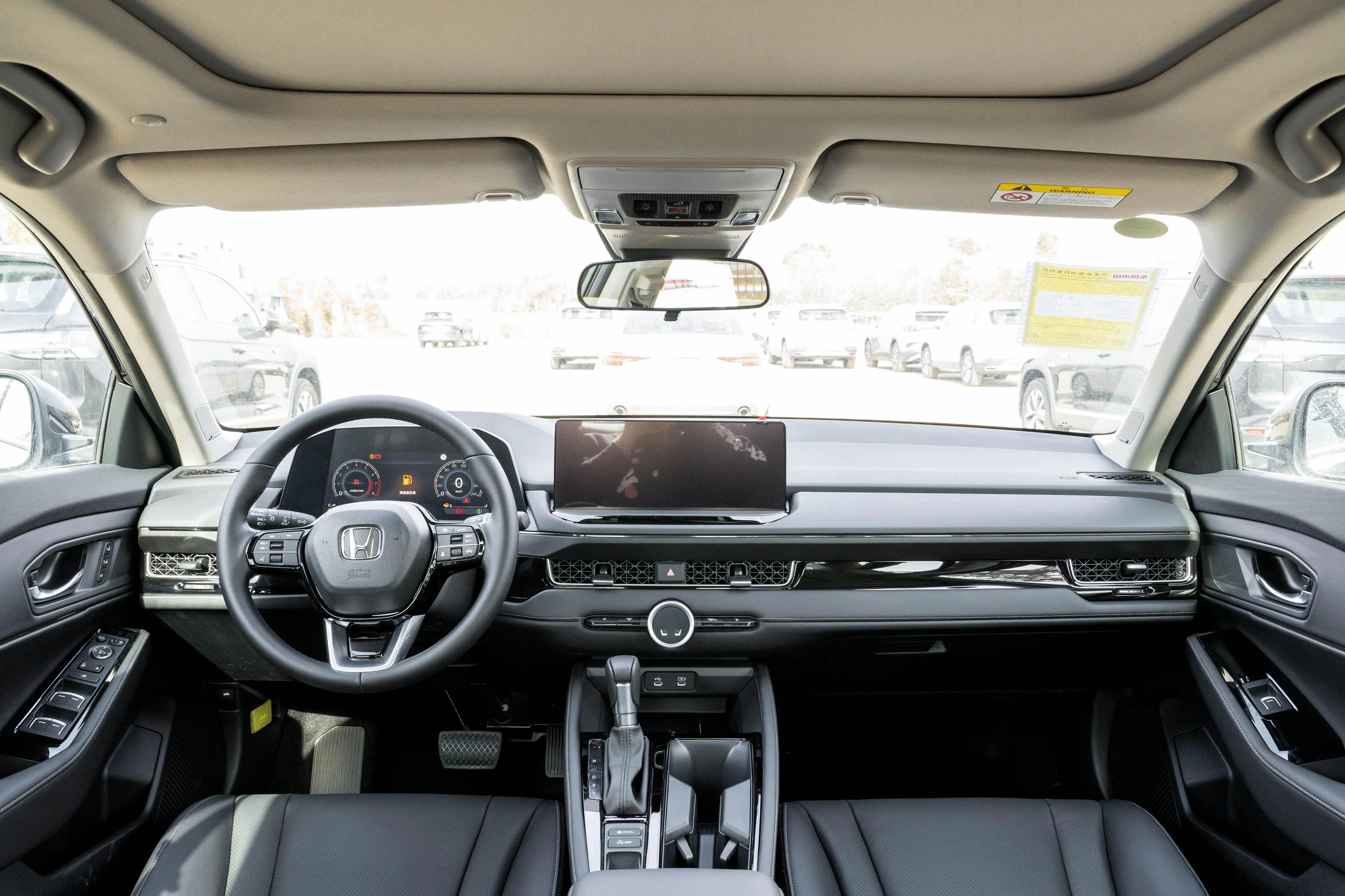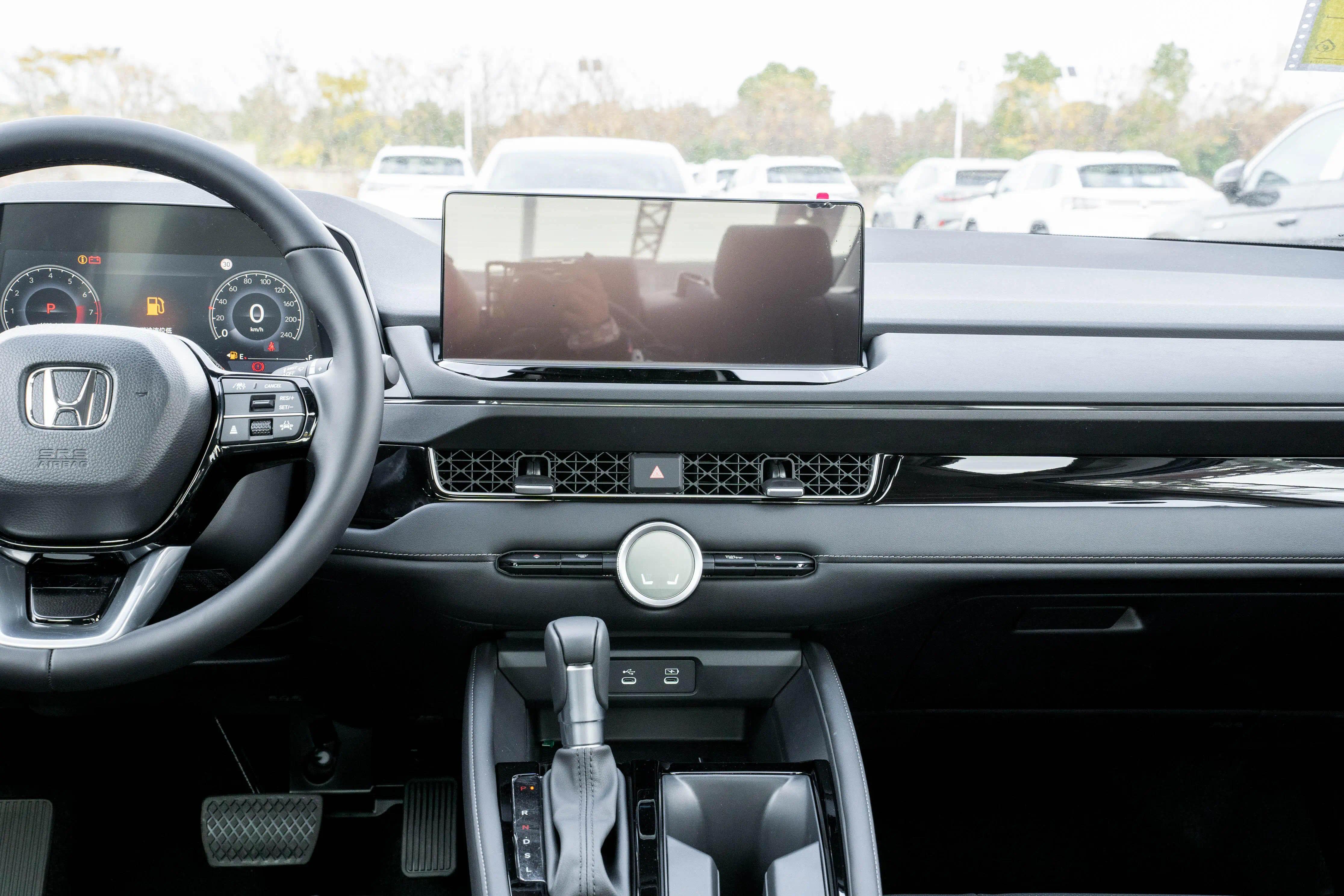 进入到内饰部分,内饰方面这款车型保持着本田家族的经典造型设计,内饰以T型的中控部分为主,整体的造型设计功能布局简单、合理,操作简单,尤其是在内饰用料方面,与之前相比有了较大的升级,内饰采用较为细腻的皮革以及搪塑工艺包覆,虽说不上豪华,但是内饰的整体质感还是表现不错的;而在配置方面,这台车型配备有10.2 英寸全液晶仪表 + 12.3 英寸悬浮式中控屏,搭载 Honda CONNECT 4.0 智导互联系统,操作流畅,支持CarLife和CarPlay,导航、听歌都很便捷;值得一提的是,该车型的高配版本还配备有2个高性能扬声器的BOSE音响,音质调校适中,高中低音层次清晰,在整体的配置方面确实值得肯定,这在之前的本田车型上也是不敢想的功能配置,足以看出本田的诚意。