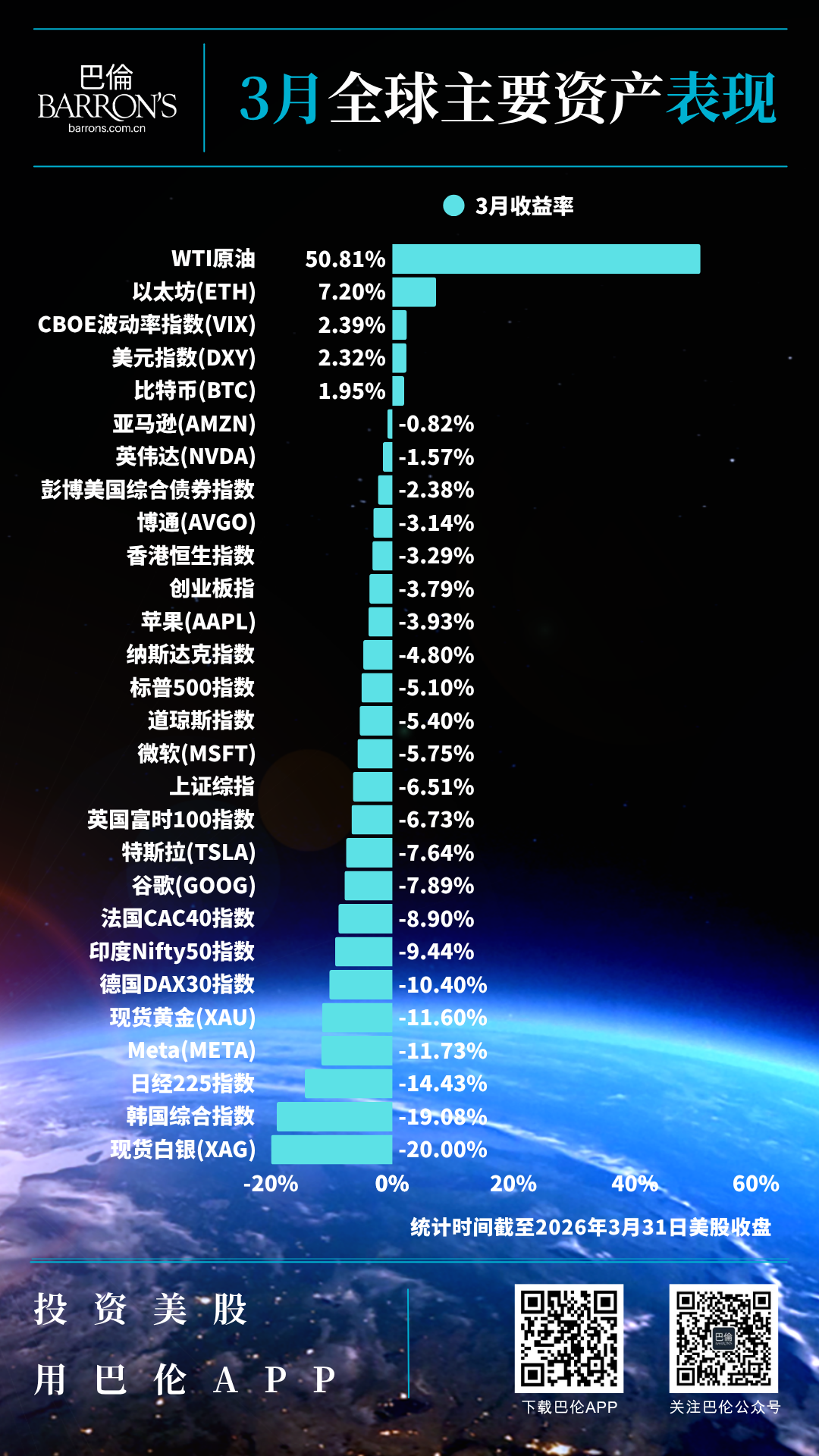纳斯达克综合指数在3月份下跌4.8%,为自2025年3月以来的最大单月百分比跌幅,也创下了自2025年一季度以来的最差季度表现。
